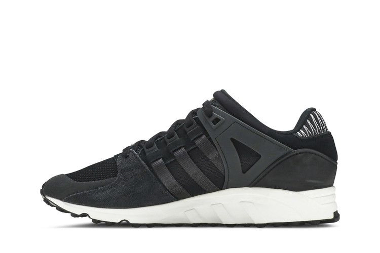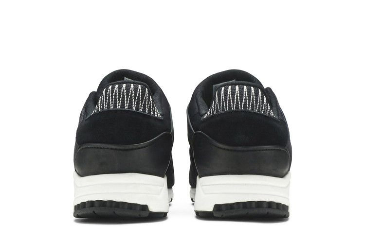 Модель EQT Support RF вдохновлена техническим дизайном оригинальной серии Equipment от adidas. Верх из премиальной замши и сетки выполнен в монохроматическом черном цвете. Тональная нейлоновая тесьма Three-Stripes интегрирована в систему шнуровки, а TPU-пятка обеспечивает устойчивость и поддержку. Контрастная белая строчка украшает пятку в виде зигзага.