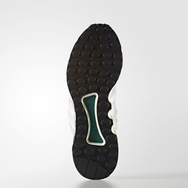 В новой модели adidas EQT Support RF Primeknit, созданной на основе оригинальной серии Equipment runner начала 90-х годов, многослойные панели в верхней части заменены на бело-серую сетку Primeknit. Дышащая конструкция поддерживается промежуточной подошвой из EVA с пожелтевшей отделкой, а для устойчивости используется фирменная планка Torsion Bar.