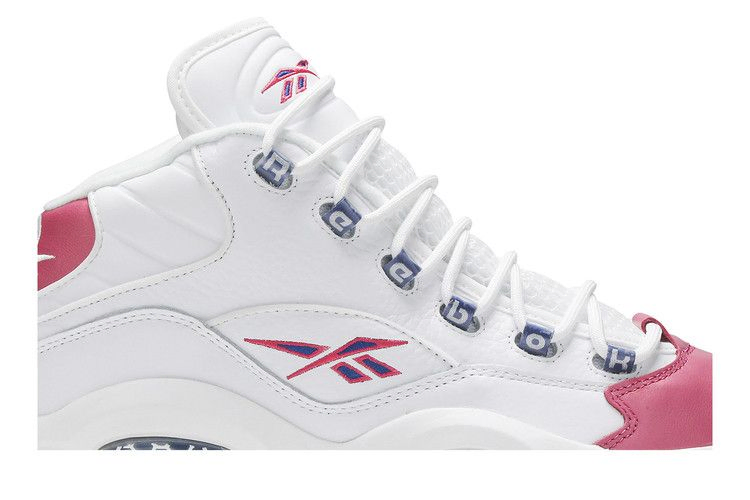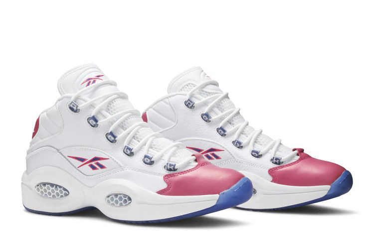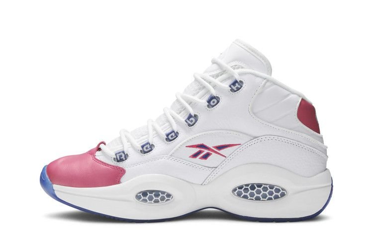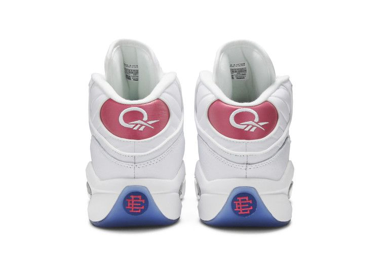 Модель Eric Emanuel x Reebok Question Mid "Pink Toe", созданная в сотрудничестве с нью-йоркским дизайнером спортивной одежды, представляет собой яркий вариант дебютной фирменной обуви Аллена Айверсона. Верх из белой галтованной кожи украшен розовыми деталями на мыске и пятке, на последней вышит стандартный логотип Question. На ледяной полупрозрачной подошве пятки видна монограмма Эрика Эмануэля, заменяющая номер "3" на майке Айверсона.