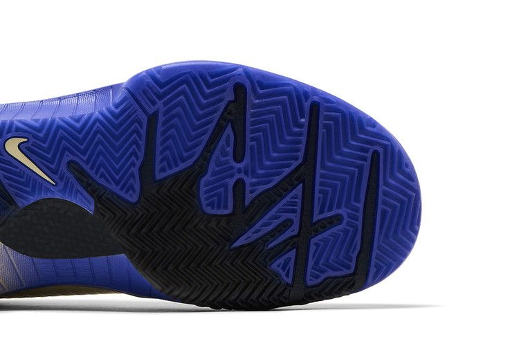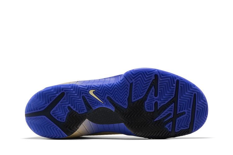 Модель FC Barcelona x Nike Kobe 4 Protro 'Away Kit' отдает дань уважения любимой команде Коби Брайанта из Ла Лиги. Низкие кроссовки выполнены из искусственной кожи цвета Team Gold с тиснением под змеиную кожу на носочной части и воротнике. Контрастные черные акценты расставлены на фирменном логотипе Swoosh и пятке. На язычке логотип Коби выполнен в персидском фиолетовом цвете и сочетается с текстильной подкладкой воротника. Тот же оттенок градиентно нанесен на легкую филоновую промежуточную подошву, оснащенную крупногабаритным блоком Zoom Air в пятке.