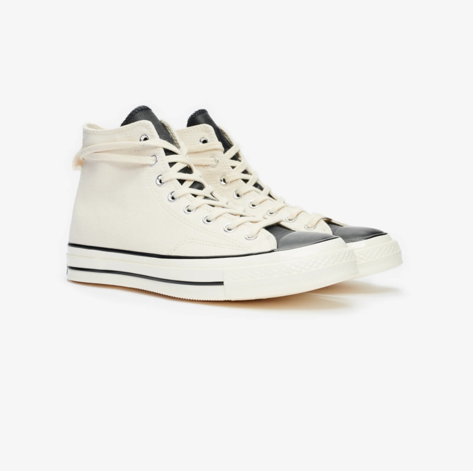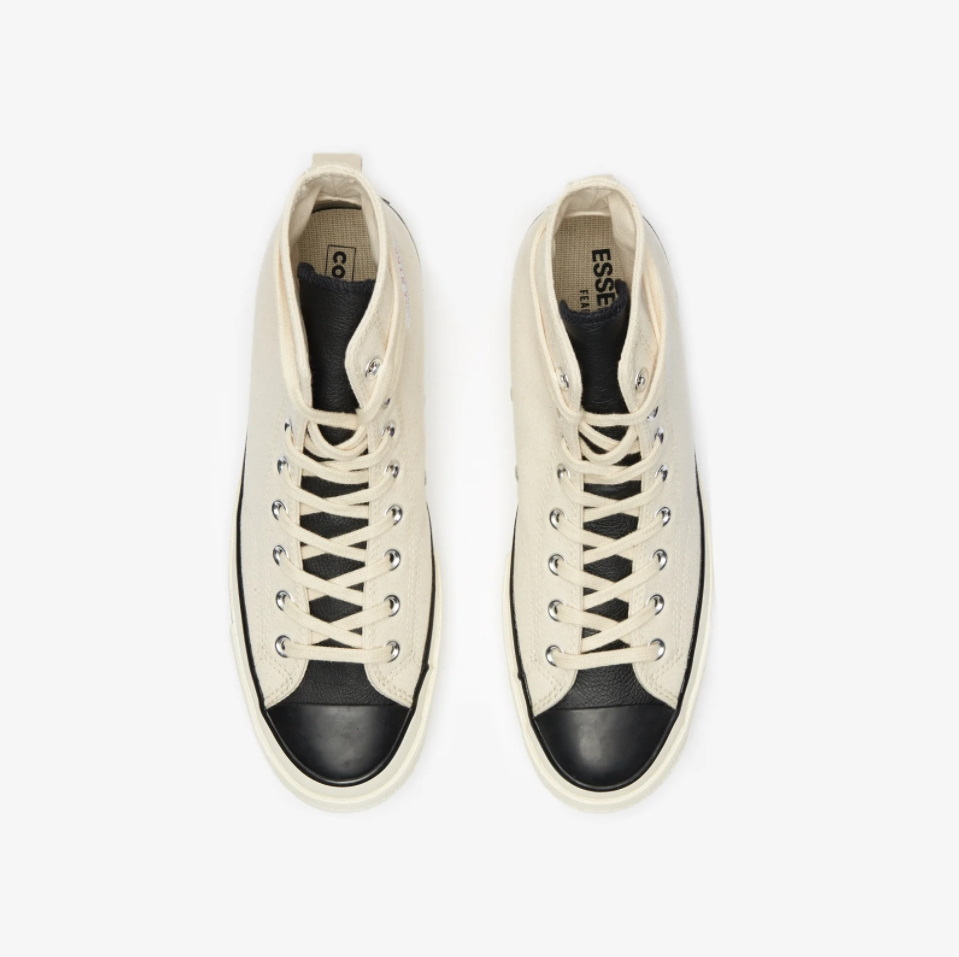 Fear of God x Chuck 70 High Natural Ivory объединяют классический дизайн и новые элементы, в том числе шнурки обернутые вокруг щиколотки. Черная отделка и двойная белая подошва с резиновым протектором завершают дизайн.- Цвета: Black/Natural Ivory