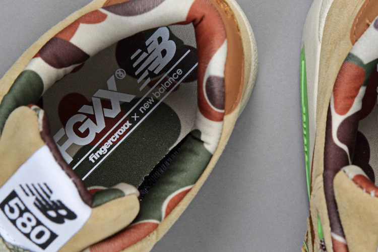 New Balance объединился с японским брендом Fingercroxx, чтобы выпустить эксклюзивную итерацию любимого фанатами силуэта MT580. Модель Fingercroxx 580 имеет верх из замши премиум-класса, выполненный в пшеничной, коричневой и камуфляжной цветовой гамме. Низкая модель также имеет мягкий воротник для комфорта, зеленые акценты на подкладке "N" и верхних люверсах, дополнительные детали из коричневой кожи на носке и пятке, а также камуфляжный рисунок на внутренней подкладке.