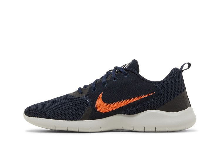Кроссовки Nike Flex Experience Run 10 "Dark Obsidian Hyper Crimson" отличаются гибкой конструкцией и легким силуэтом, созданным для любителей бега в стиле casual. Верх из сетки темно-синего цвета украшен вышитым оранжевым логотипом Swoosh на текстильных панелях. Синтетическая накладка без швов укрепляет пятку, а петля из тесьмы обеспечивает легкое надевание и снимание. Кроссовки стоят на светло-серой подошве из вспененного материала с вырезанными лазером желобками в носочной и пяточной частях, которые способствуют естественному шагу.