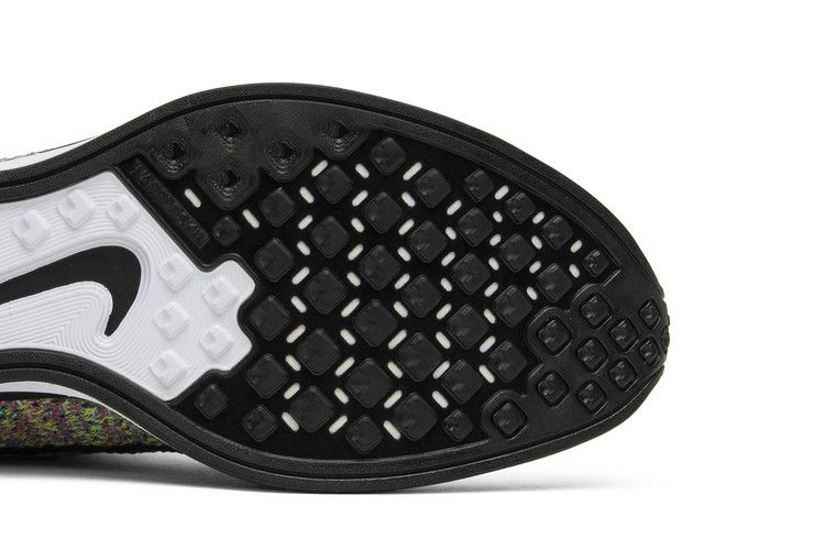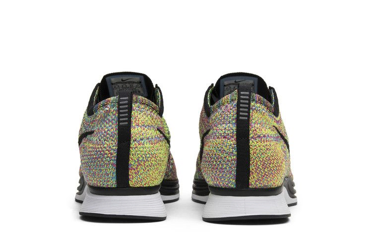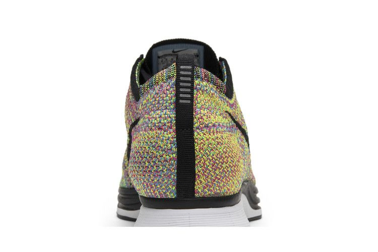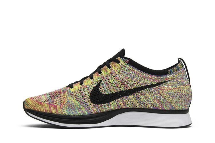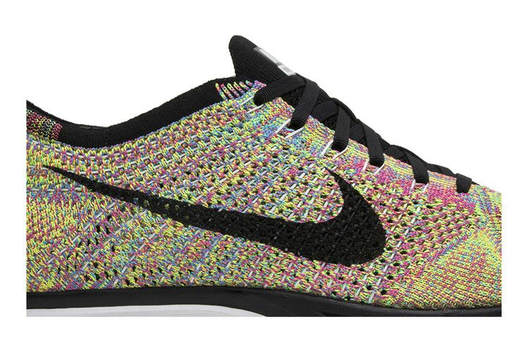 Бегуны и любители кроссовок с нетерпением ждали дебюта этих разноцветных Nike Flyknit Racer в июне 2013 года. Релиз "Multi-Color" представляет собой привлекательный спектр цветов. Верх кроссовок Flyknit сочетает в себе розовый, желтый, зеленый, синий и фиолетовый цвета. Лавандовые нити Flywire соединены с черными шнурками без завязок, что обеспечивает надежную фиксацию. Плюшевая пена Reactive помогает поглощать удары, а резиновая подошва обеспечивает сцепление на каждой миле.