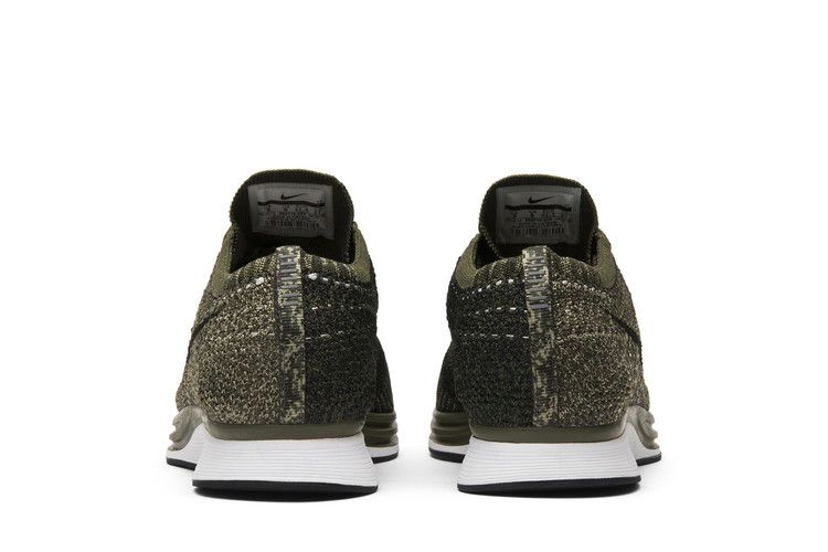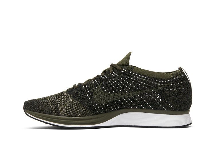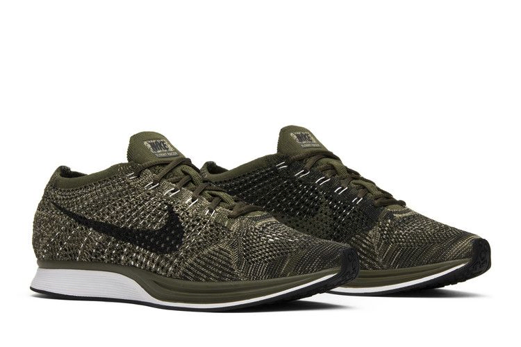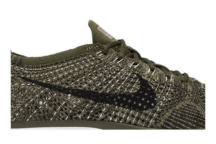 Nike Flyknit Racer "Earth Tones" - это модель в цветах Rough Green, Black, Neutral Olive и Sequoia с верхом из материала Flyknit, черным Swoosh и воротником, напоминающим носок. Выпущенные в декабре 2016 года, кроссовки также имеют черно-белую промежуточную подошву и черную подошву.