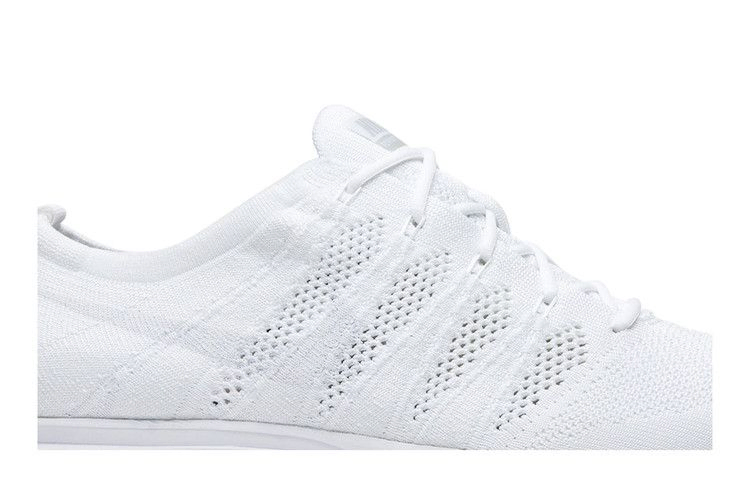 Nike Flyknit Trainer вышли в апреле 2018 года в этой расцветке White Gum. Спартанский дизайн подчеркивает истинно белый дышащий трикотажный верх, поддерживаемый белыми тросами Flywire, которые вместе с белыми шнурками обеспечивают адаптивную посадку. Тональная промежуточная подошва Nike Zoom Air в пятке и передней части стопы обеспечивает легкую амортизацию, а подошва усилена резиной для улучшения сцепления и долговечности.
