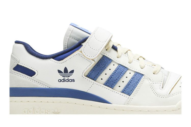 Модель adidas Forum 84 Low OG "Bright Blue" возвращает винтажные кроссовки в ностальгическом цветовом решении, которое остается верным корням кроссовок 80-х годов. Верх кроссовок выполнен из состаренной белой кожи, фиксируется регулируемым ремешком на ноге и украшен синими замшевыми полосками. Винтажная отделка отличает промежуточную подошву с открытым клином из EVA и тесьмой Dillinger на медиальной стороне. Подошва из синей резины дополнена красным кругом.