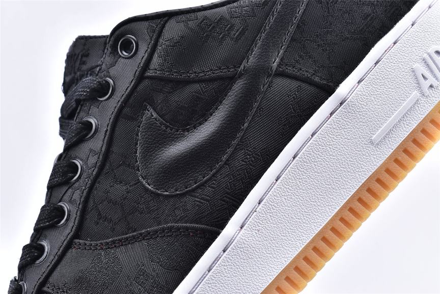 Расцветка Black Silk тройной коллаборации брендов Fragment Design x CLOT x Air Force 1 появилась в ноябре 2019 года. Обувь переделывает классический силуэт AF1 Nike 1982 года с узорчатым шелковым верхом, который можно сжечь или стереть, чтобы показать альтернативный дизайн. Дизайн брендов появляется вместе на красной стельке.- Цвета: Black/University Red-White