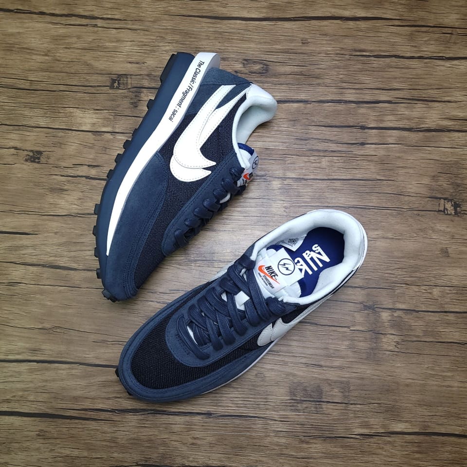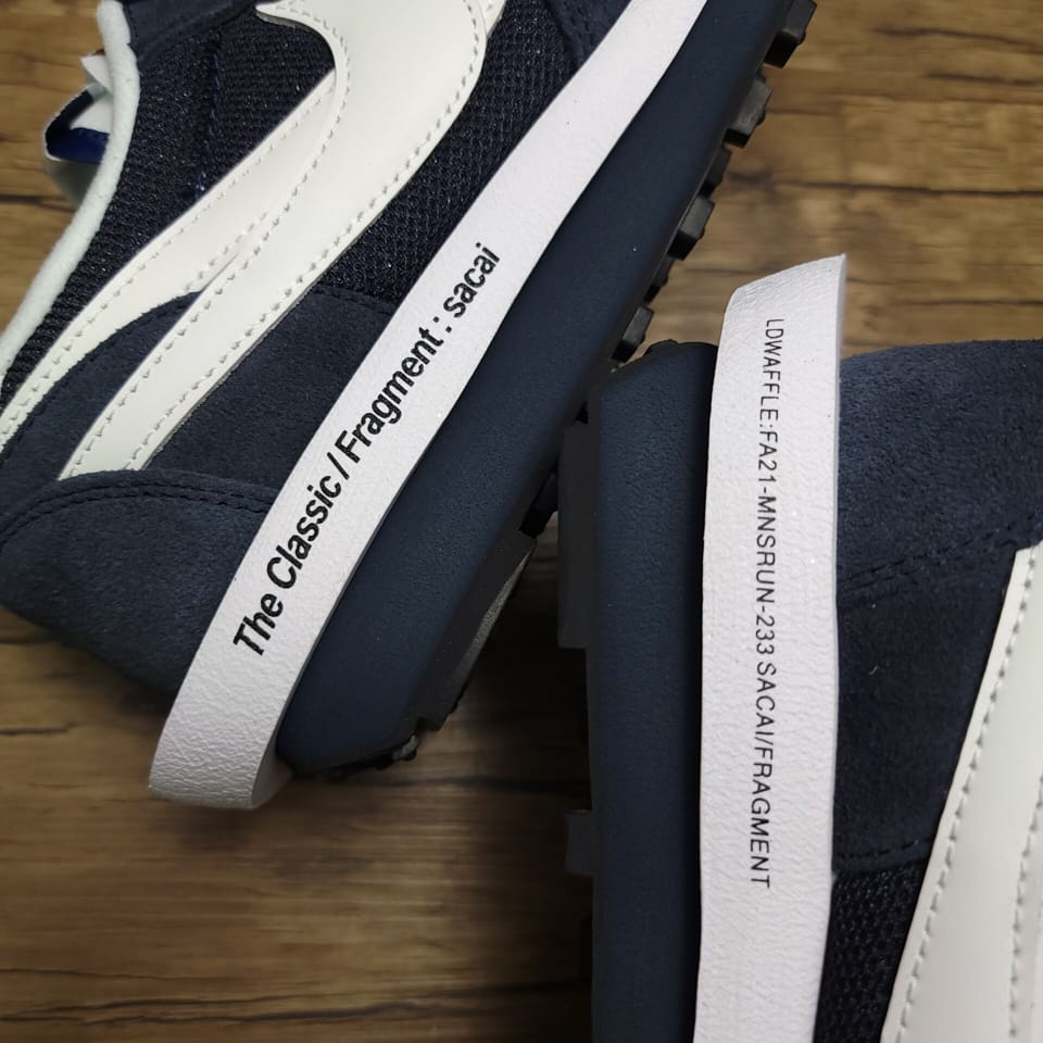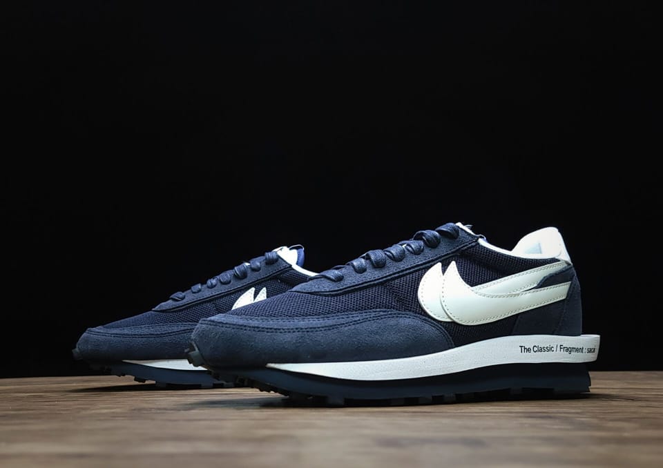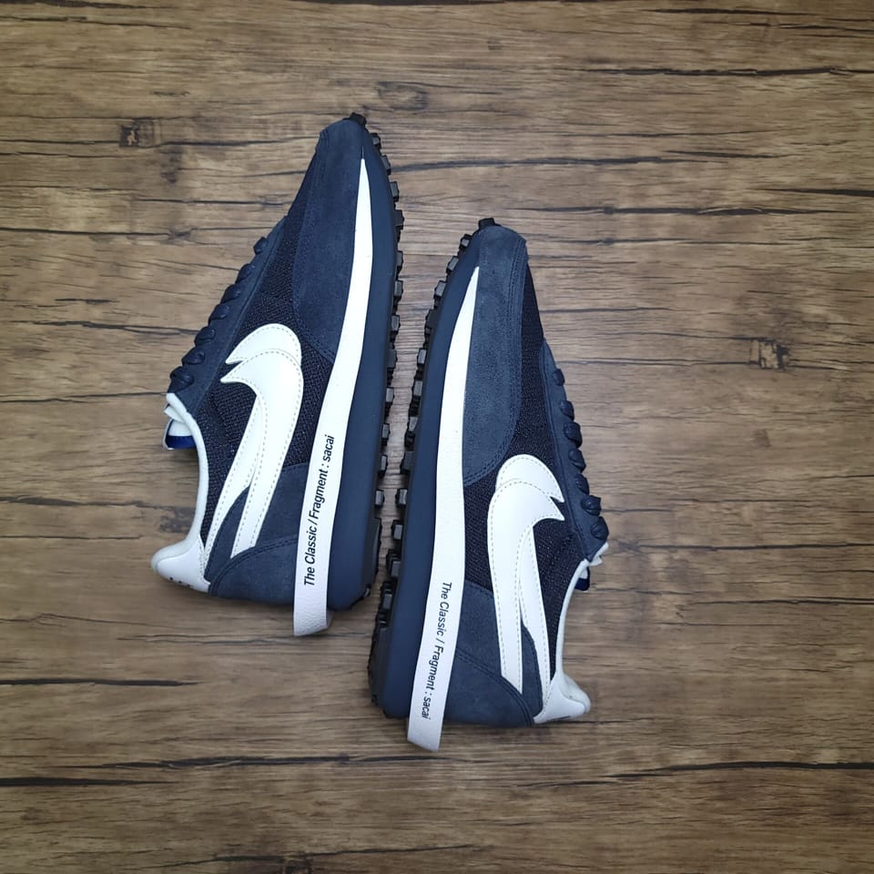 Гибридный силуэт сочетает в себе элементы Nike LDV и Waffle Racer и оформлен в традиционном сочетании сетки и замши. Темно-синяя отделка в тон контрастирует с белыми акцентами на двойном кожаном логотипе Swoosh и пятке, последняя отмечена двойным логотипом Nike и sacai. Тканые бирки Nike и Fragment украшают сдвоенные язычки, а на удлиненной мидсоли из пеноматериала написано «The Classic / Fragment: sacai». Резиновая подошва Nike обеспечивает превосходное сцепление с поверхностью.- Цвета: Blue Void/Obsidian/White/White