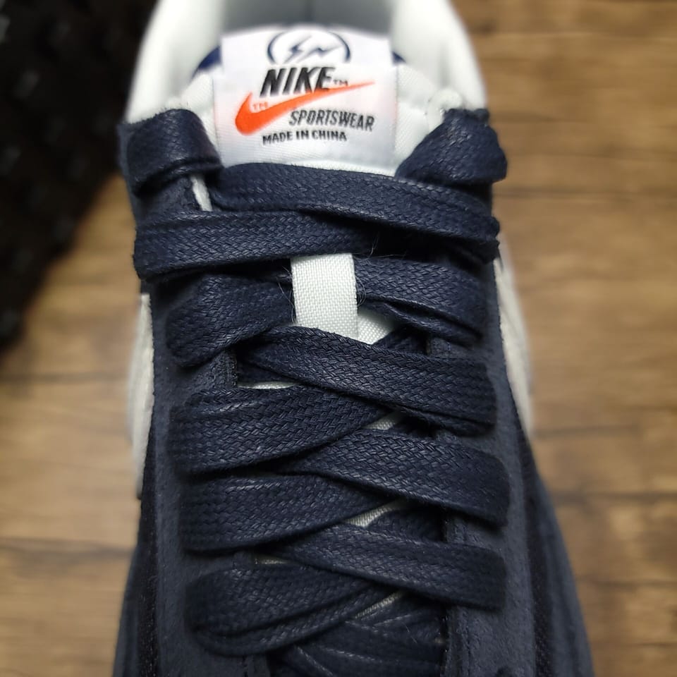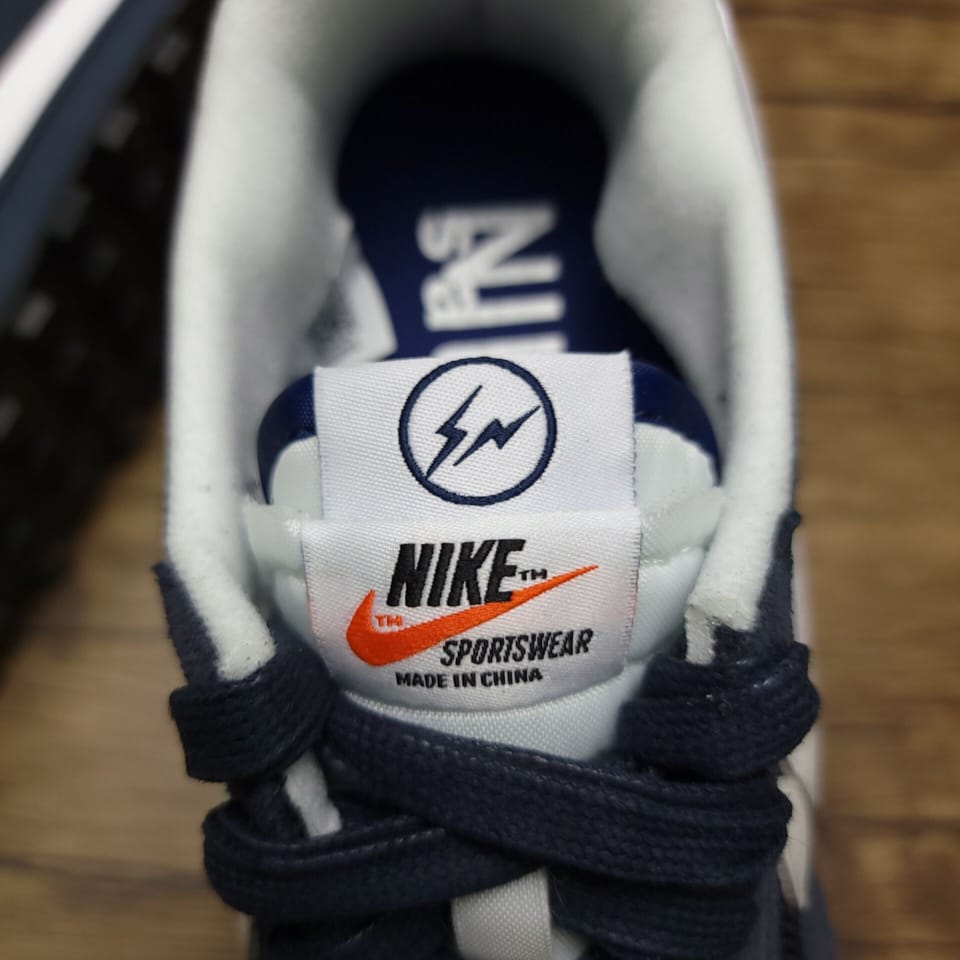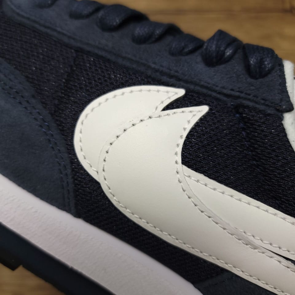 Гибридный силуэт сочетает в себе элементы Nike LDV и Waffle Racer и оформлен в традиционном сочетании сетки и замши. Темно-синяя отделка в тон контрастирует с белыми акцентами на двойном кожаном логотипе Swoosh и пятке, последняя отмечена двойным логотипом Nike и sacai. Тканые бирки Nike и Fragment украшают сдвоенные язычки, а на удлиненной мидсоли из пеноматериала написано «The Classic / Fragment: sacai». Резиновая подошва Nike обеспечивает превосходное сцепление с поверхностью.- Цвета: Blue Void/Obsidian/White/White