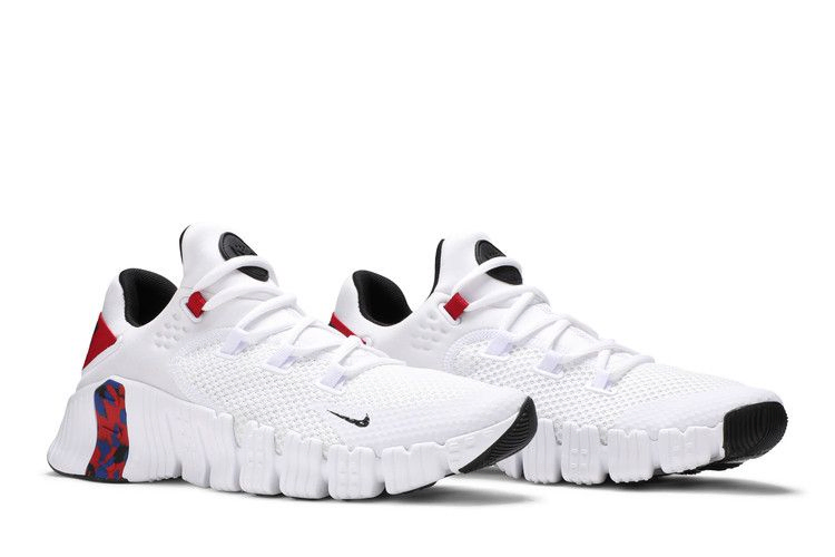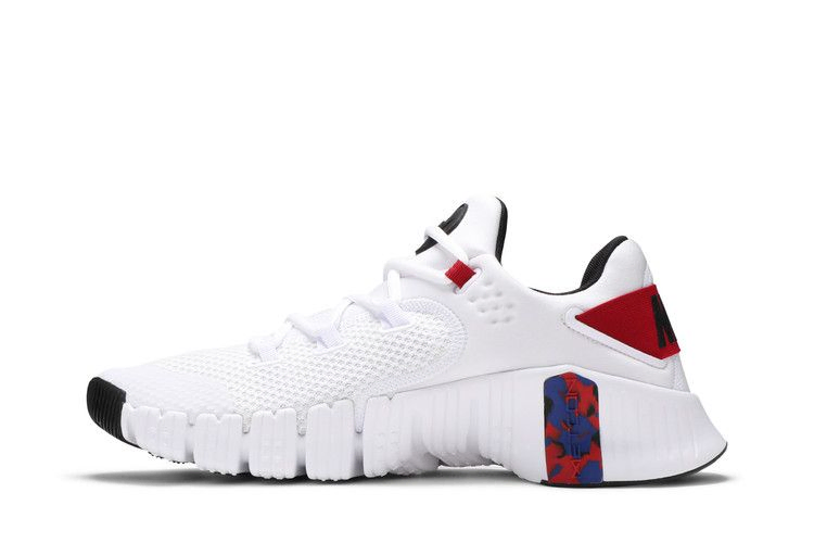 Nike Free Metcon 4 "Veterans Day" посвящены празднику 11 ноября и выполнены в патриотичной цветовой гамме. Тренировочные кроссовки выполнены из воздухопроницаемой белой сетки с неопреновым воротником, вдохновленным оригинальными Air Huarache 1991 года. Брендинг Nike расположен на малиновом эластичном пяточном ремне, который заменяет традиционную стойку пятки. Легкая конструкция опирается на подошву из пеноматериала с гибкой технологией Nike Free в передней части стопы. Фирменная широкая плоская пятка Metcon дополнена резиновыми деталями в контрастном сочетании красного и темно-синего оттенков.