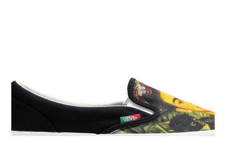 Выпущенные в июне 2019 года, Vans Frida Kahlo x OG Slip-On LX "Self-Portrait" - один из трех дизайнов, посвященных мексиканской художнице-сюрреалистке. На этих слипонах, выпущенных в июне 2019 года, изображен один из интимных и причудливых автопортретов Кало. Она смотрит с холщовой крышки в сопровождении обезьян и темной листвы. Знаковый красный логотип на бампере Vans и красно-зеленая фирменная бирка выделяются на фоне вулканизированной белой подошвы и черной пятки.