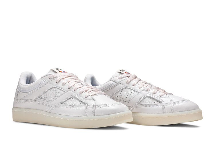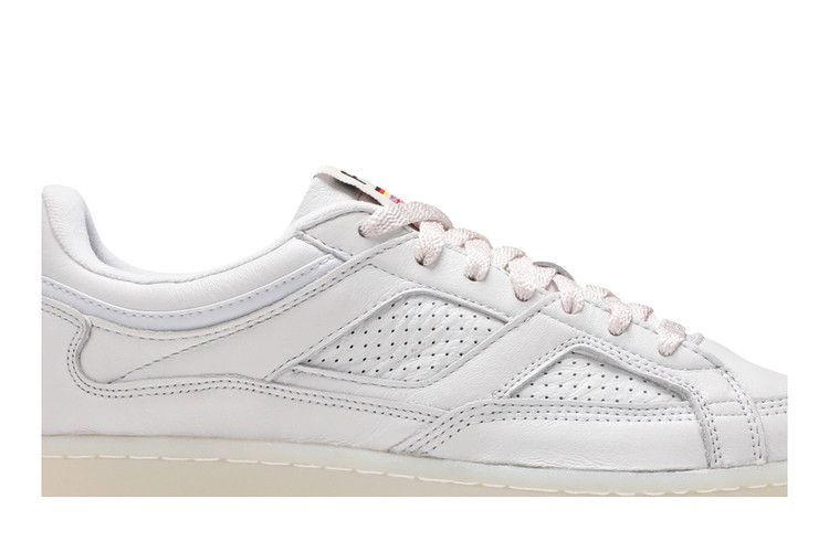 Созданная в сотрудничестве со скейт-брендом Джейсона Дилла, модель Fucking Awesome x adidas Experiment 2 'Crystal White' представляет собой однотонный кожаный лоу-топ, вдохновленный классическими баскетбольными кроссовками 80-х и 90-х годов. Внешний брендинг ограничен золотым трилистником на пятке и тканым язычком FA. Контрастная отделка королевского синего цвета нанесена на носок, украшенный тисненым принтом Fucking Awesome. Полупрозрачная резиновая подошва закрепляет многослойную конструкцию.