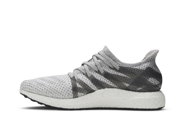 Futurecraft MFG (Made for Germany) - первая модель, созданная на роботизированном заводе adidas SPEEDFACTORY в Ансбахе, Германия, - была представлена в октябре 2016 года. Необычный серо-черный верх из материала Primeknit, созданный с использованием технологии ARAMIS, имеет ряд синтетических заплаток, которые обеспечивают поддержку вместо традиционной клетки. Инновационные элементы расположены на знакомой белой полноразмерной подошве Boost и резиновой подошве с пяткой.