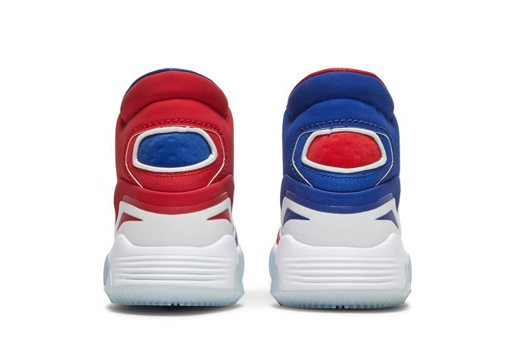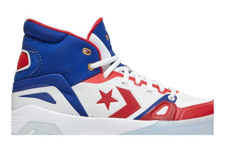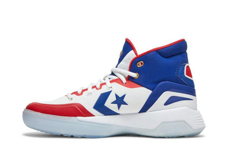 Модель Converse G4 Mid 'ABA' выполнена в характерной палитре, вдохновленной Американской баскетбольной ассоциацией - профессиональной лигой, объединившейся с НБА в 1976 году. Асимметричные красные и синие акценты нанесены на левый и правый ботинки, оба из которых имеют белый текстильный верх с брендингом Star Chevron на четверть панели. На правом язычке повторяется фирменный знак Converse, а на левом - логотип ABA. Промежуточная подошва сочетает в себе переднюю часть Zoom Air и амортизацию Nike React в пятке. Подошва из ледяной полупрозрачной резины обеспечивает надежное сцепление с поверхностью.