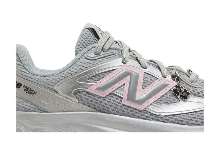 Модель GANNI x New Balance Fresh Foam Trainer 'Silver Metallic Pink', выпущенная в рамках совместного проекта из двух частей, сочетает в себе воздушную серую сетку с серебристыми металлическими накладками без швов. На боковой стороне серебристый логотип "N" выделен нежно-розовыми деталями, совпадающими с одним из двойных язычков на пятке. На язычке и на носочной части - двойной брендинг, а на формованных шнурках и съемном брелоке - логотип-бабочка GANNI. Объемная промежуточная подошва Fresh Foam X, на 3% состоящая из биологически чистого сырья, обеспечивает легкую амортизацию при каждом шаге.