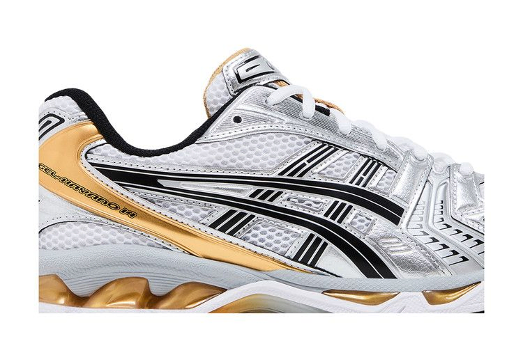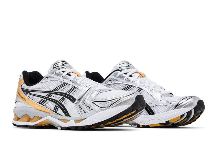 Модель ASICS Gel Kayano 14 "White Pure Gold" подчеркивает полированные детали кроссовок, выпущенных в 2008 году, - первой части линейки Kayano, разработанной Хиденори Ямашитой, который принял бразды правления от создателя и тезки франшизы, Тосикадзу Каяно. Эта пара имеет дышащий верх из белой сетки, усиленный синтетическими накладками цвета серебристого и золотого металлика. Дополнительные золотые акценты выделяют видимые вставки Gel, расположенные в промежуточной подошве из пеноматериала EVA двойной плотности.