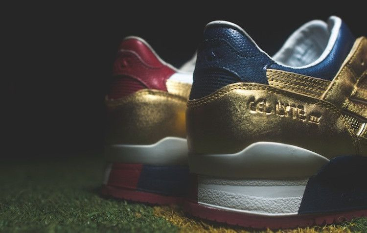 Эти ASICS Gel Lyte 3 'USA', созданные Ронни Фигом, были выпущены к чемпионату мира по футболу 2014 года в Бразилии. Модель выполнена в золотистом цвете с патриотическими красными, белыми и синими акцентами на язычке, межподошве и подошве. Также в комплект входят синие и красные веревочные шнурки и стелька с американским флагом. В коллекцию Kith Football Equipment также вошли синие, желтые и зеленые ASICS GT-II 'Brazil'.