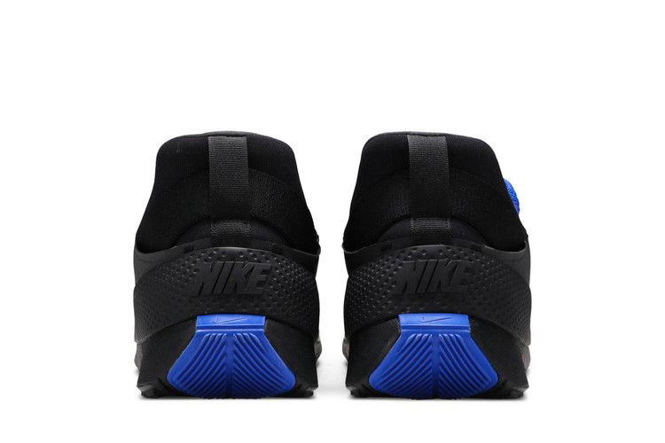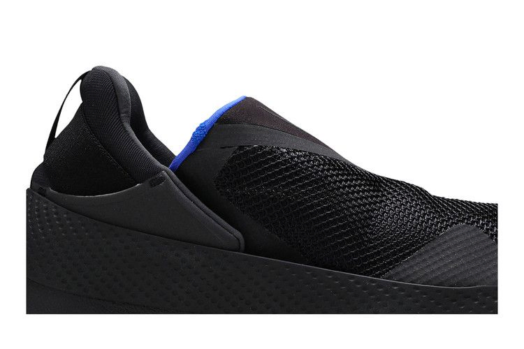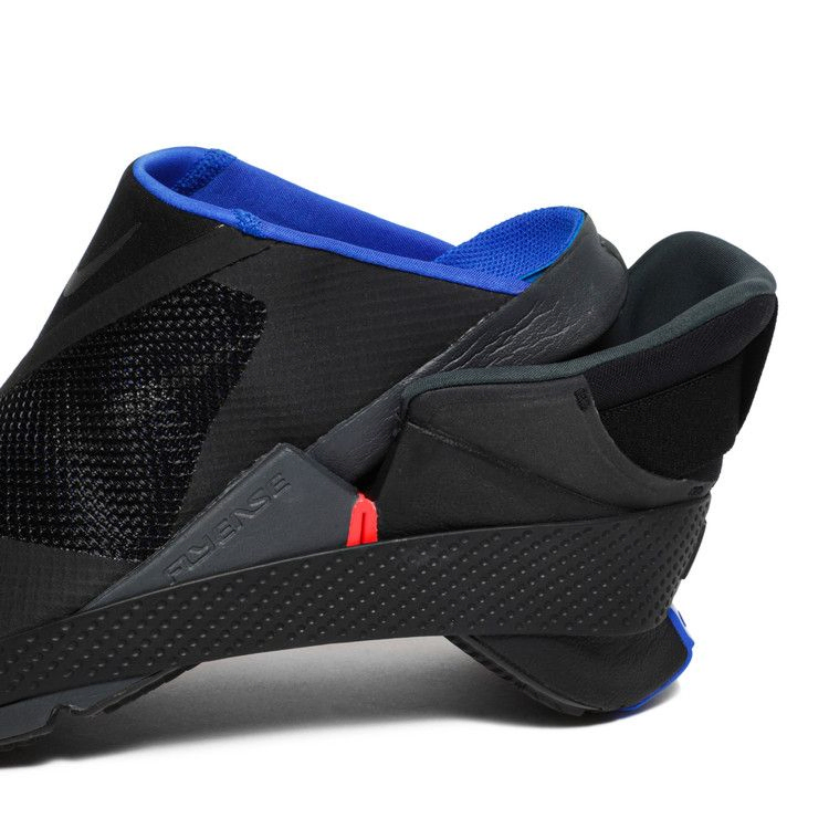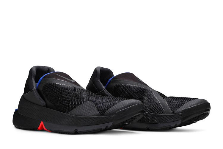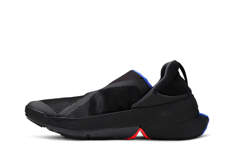 Модель Nike Go FlyEase "Black" представляет собой одну из трех первых расцветок революционных кроссовок бренда. Уникальная технология, лежащая в основе доступности кроссовок, - это запатентованный бистабильный шарнир, закрепленный с помощью резинового натяжителя межподошвы, который тянется от носка и огибает заднюю часть пятки. Когда шарнир открыт, задняя часть стельки приподнимается в воздух под углом примерно 30 градусов, позволяя ноге легко соскользнуть на шарнир и разжать его. Чтобы снять обувь, владелец наступает на каблук и просто выходит.