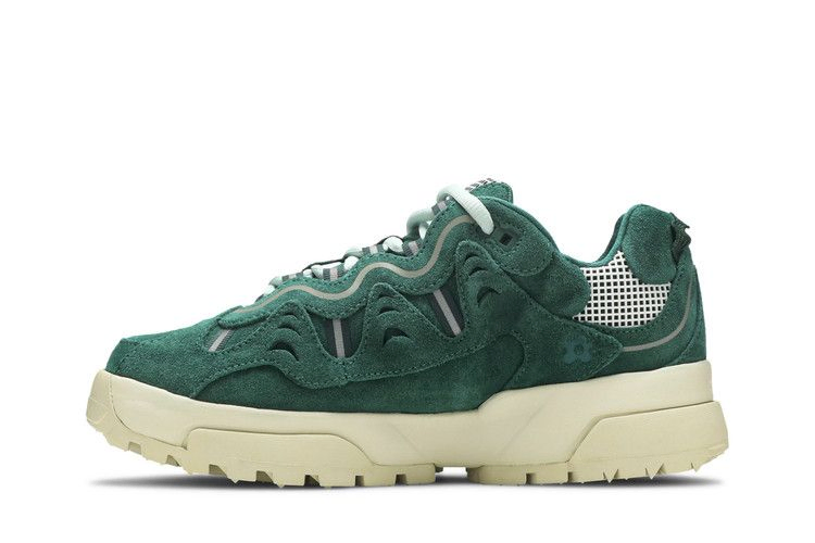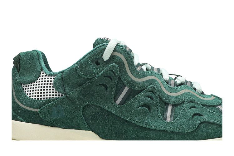 Модель Golf Le Fleur x Converse Gianno Low 'Evergreen', созданная в сотрудничестве с Тайлером Креатором, демонстрирует дизайн в духе 90-х годов, в котором прослеживается интерес рэпера к походам по тропам и BMX. Многослойный верх из зеленой замши, использующий более широкую форму для более удобной посадки, опирается на объемную промежуточную подошву из EVA с контрастной отделкой цвета слоновой кости. Цветочный брендинг Golf Le Fleur украшает сетчатый язычок и боковую пятку, а светоотражающие акценты обеспечивают дополнительную видимость в условиях недостаточной освещенности.
