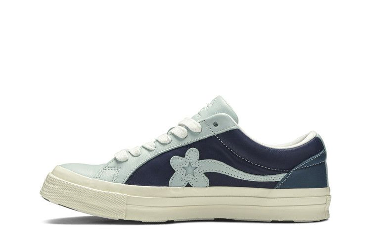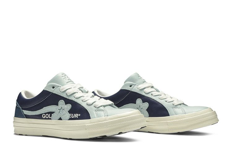 Golf Le Fleur x One Star Ox 'Industrial Pack - Blue' - одна из двух моделей, выпущенных в феврале 2019 года в рамках сотрудничества между Тайлером Креатором и Converse. Одетые в кожу, кеды с низким верхом демонстрируют три панели Barley Blue, Patriot и Egret для создания тонального дизайна. Белая подкладка сочетается с хлопковыми шнурками и объемной промежуточной подошвой, а горизонтальный логотип в виде цветка и звезды пришит к средней части стопы, чтобы обозначить оба бренда.