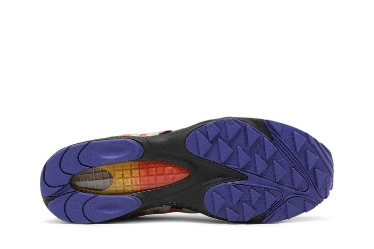 Saucony Grid Azura "Fire" - одна из четырех расцветок, составляющих "Astrotrail Pack", в котором представлены кроссовки для бега по тропам, вдохновленные универсальными четырьмя элементами западной астрологии. В этой модели на нейлоновый верх, отделанный градиентной смесью желтого и оранжевого цветов, наложены накладные элементы из замши цвета загара. Утилитарная эстетика кроссовок дополнена системой шнуровки на шнурке-банджи и дополнительной завязкой на язычке, украшенной тремя огненными знаками зодиака. Промежуточная подошва из пеноматериала с крапинками поддерживается подошвой из фиолетовой резины с треугольными накладками для надежного сцепления.