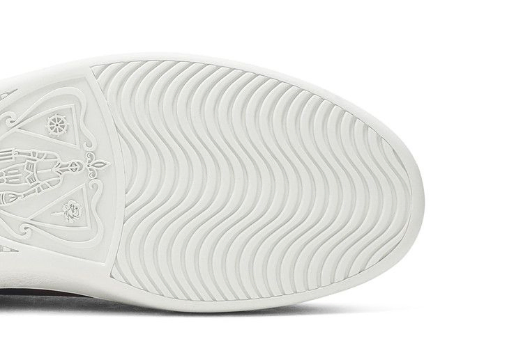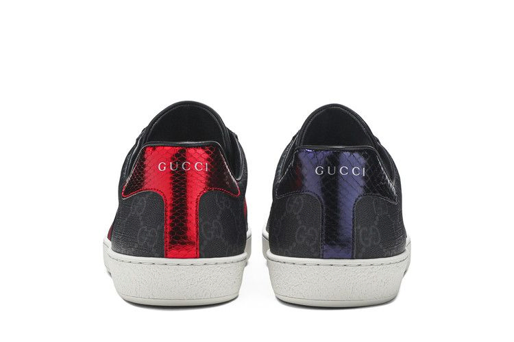 Эта серая расцветка Gucci Ace GG Supreme представляет собой более сдержанную эстетику роскошного дома. Низкопрофильный верх из кокосового холста украшен фирменной монограммой Gucci, нанесенной тоном по всей поверхности. Контрастный цвет придают синяя и красная тесьма на задней панели, а также несовпадающие красные и фиолетовые вставки из змеиной кожи на каблуках слева и справа.