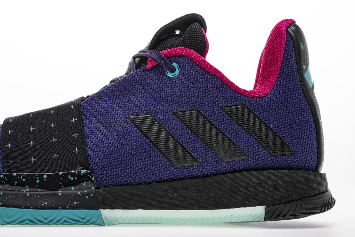 Кроссовки имеют чёрную подошву с технологией амортизации Boost. С новой политикой NBA, относительно цветов кроссовок, этот яркий цвет Harden Vol. 3 станет яркой и заметной деталью в Toyota Center. Розничная цена пары от 10490 рублей.