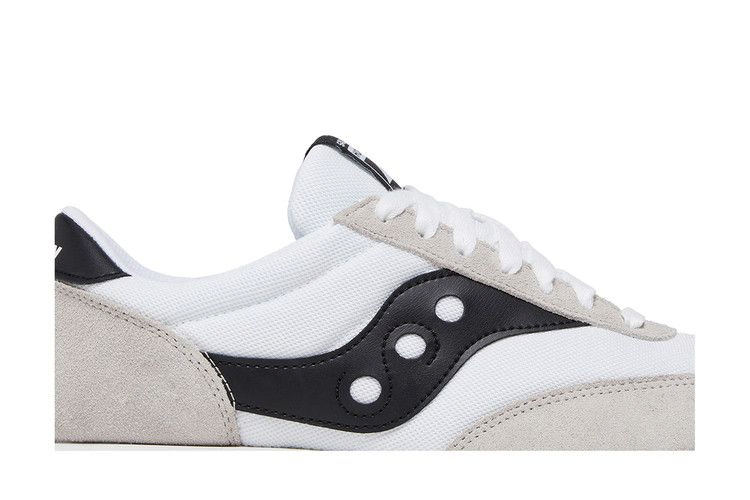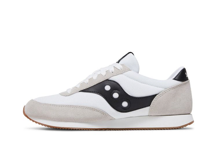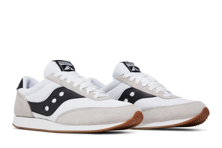 Модель Saucony Hornet "White Black" возвращает к жизни винтажные кроссовки, дебютировавшие в 1975 году. Верхняя часть кроссовок изготовлена из воздухопроницаемой белой сетки с тональными замшевыми накладками на носке и пятке. Фирменный логотип Saucony в виде реки украшает задник из черной искусственной кожи. Черные вставки на пятке и тканый язычок. Кроссовки опираются на полноразмерную промежуточную подошву из ЭВА, которая поддерживается подошвой из жевательной резины.