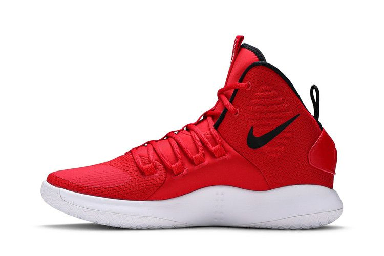 Дебютировавшие в 2008 году кроссовки Nike Hyperdunk X были созданы для игры на корте. Преувеличенный силуэт с высокой вершиной имеет дышащий верх цвета "University Red" с динамичной системой шнуровки, крыло из TPU в средней части стопы и волнистый рисунок сцепления с поверхностью. Брендинг Nike изображен на блестящем черном логотипе Swoosh на белой накладке вдоль четвертной панели, а тисненый брендинг Zoom - на белой межподошве.
