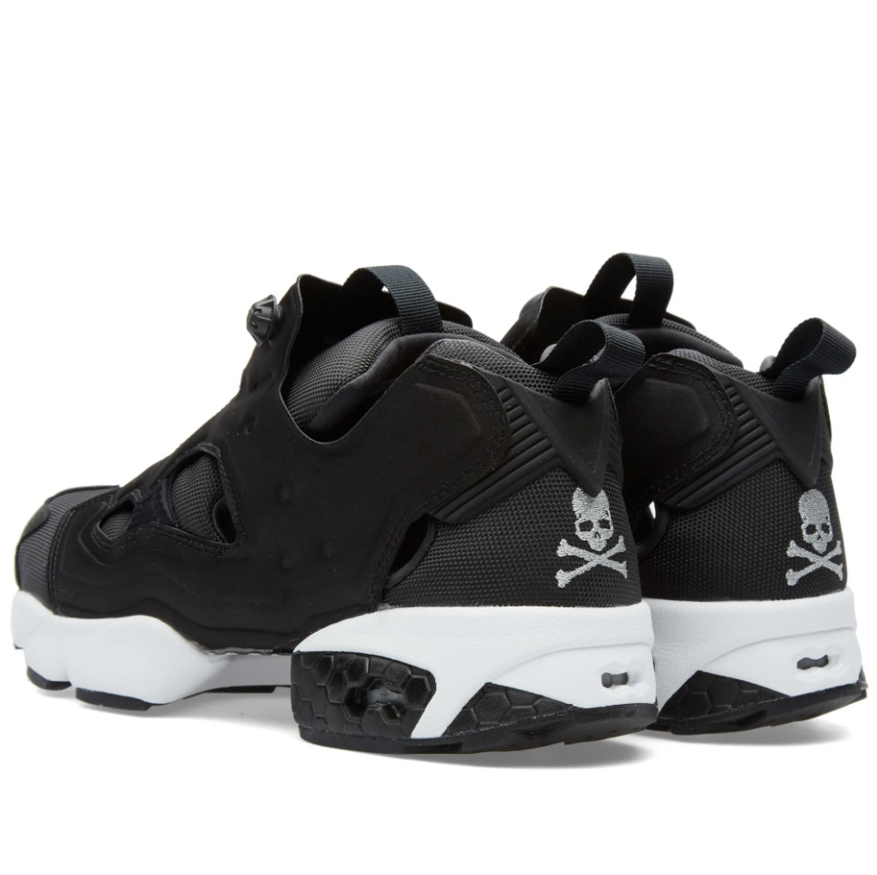 Mastermind Japan применяет свою фирменную простую цветовую палитру к InstaPump Fury от Reebok, используя вставки из неопрена и нейлона по всей конструкции верха. Инструмент Pump заменяет необходимость в традиционных шнурках, а различные изображения известного логотипа Mastermind в виде черепа и скрещенных костей проштампованы по всей поверхности кроссовок.- Цвета: Black/White/Silver
