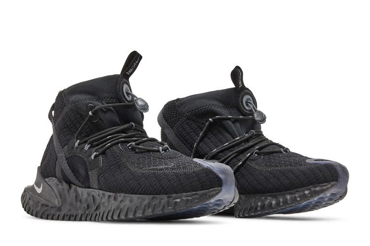 Модель Nike ISPA Flow 2020 SE "Dark Smoke Grey" выполнена в неприметной цветовой гамме и отличается прочным силуэтом, рассчитанным на суровые погодные условия. Утепленный верх изготовлен из черного стеганого текстиля и закреплен уникальной системой шнуровки, обеспечивающей индивидуальную посадку. Вышитые детали на задней панели и пятке обрамляют перфорированные замшевые вставки, а внешние ремешки из тесьмы добавляют утилитарной эстетики. Верхняя часть кроссовок опирается на подобранную по цвету промежуточную подошву из пеноматериала, усиленную полупрозрачными резиновыми вставками в носочной и пяточной частях.
