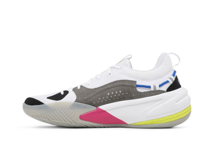 Модель J. Cole x PUMA RS-Dreamer 'Proto' имеет дизайн, основанный на оригинальном прототипе, который положил начало сотрудничеству между рэпером и брендом спортивной одежды. Уникальная система шнуровки на шнурке фиксирует бесшовный белый сетчатый верх с серыми замшевыми накладками и тесьмой на язычке и пятке. Эмблема Dreamer Джей Коула украшает заднюю часть пятки. Амортизация с высоким подъемом обеспечивается промежуточной подошвой ProFoam, украшенной розовыми деталями и серой полосой PUMA Formstrip на боковой стороне.