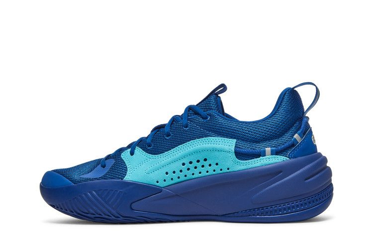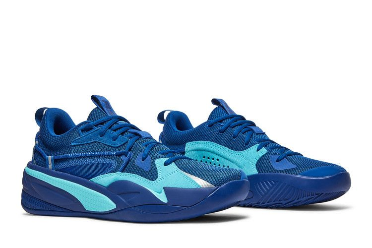 В знак уважения к обширным связям рэпера с Нью-Йорком модель J. Cole x PUMA RS-Dreamer 'E-Line' получила свое название от метро, которое проходит от Ямайки, Квинс, до Нижнего Манхэттена. Двойная система шнуровки фиксирует верхнюю часть, выполненную из синей сетки в соответствии с цветом линии поезда на карте метро MTA. Яркие аква-акценты расставлены на ряде замшевых накладок и формованной полосе Formstrip на промежуточной подошве ProFoam. Дополнительные элементы брендинга включают логотип RS-D на язычке и эмблему Dreamer от J. Cole на накладке на пятке.