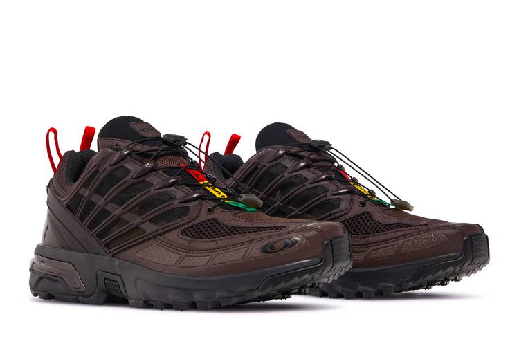 Модель Jah Jah x Salomon ACS Pro Advanced "Kankourang" представляет собой совместную расцветку, разработанную в сотрудничестве с афро-веганской закусочной, расположенной в 10-м округе Парижа. Вдохновленный мифами и традициями Западной Африки - с особым акцентом на фольклорном существе, известном как Kankourang - бегун имеет верх из сетки и синтетики темно-коричневого оттенка. На язычке расположен трехцветный ремешок из красной, желтой и зеленой тесьмы, украшенный брендингом Jah Jah. Двойные фирменные петли на пятке малинового цвета обеспечивают удобство надевания и снимания.