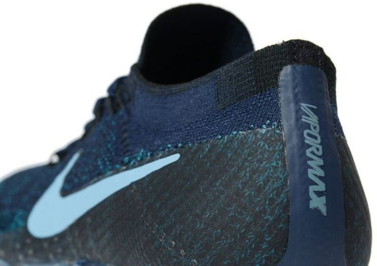 Эта модель Nike Air VaporMax была выпущена эксклюзивно в магазинах JD Sports в августе 2017 года. Верх кроссовок выполнен из материала Flyknit в цветах College Navy и Cerulean, а черные кабели Flywire обеспечивают адаптивную посадку. Цветовая гамма обуви сохраняется благодаря полупрозрачной платформе VaporMax, выполненной в цвете Cerulean.