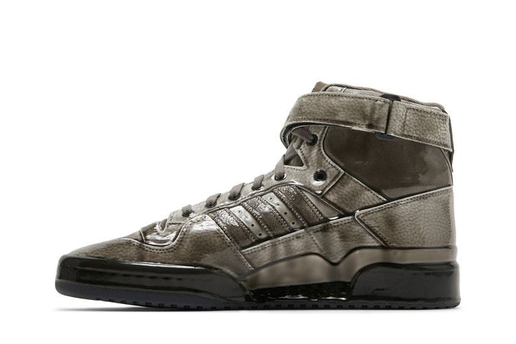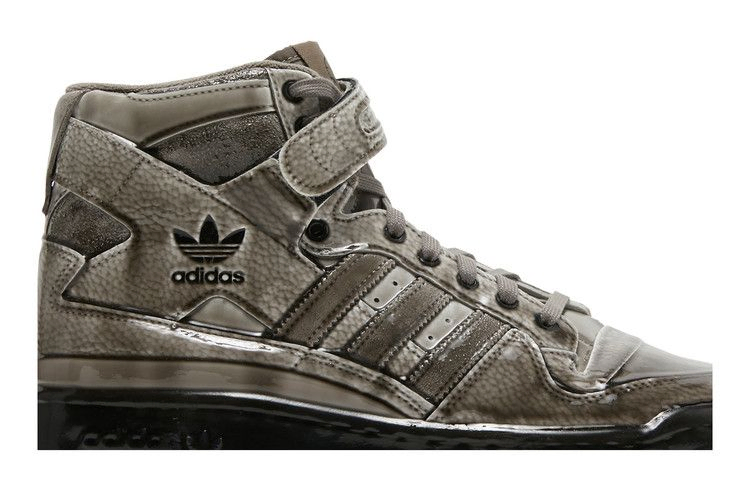 Модель Jeremy Scott x adidas Forum High Dipped 'Carbon' придает ретро-обуви 80-х годов уникальный вид, вдохновленный принципом "сделай сам". Американский дизайнер покрыл глянцевый кожаный верх ненасыщенным серым цветом, который имитирует вид обуви, погруженной в черную краску. Регулируемый ремешок с крючками и петлями фиксирует высокий воротник, подкладка из мягкого текстиля обеспечивает комфортную посадку. Винтажный силуэт подкреплен полупрозрачной черной резиновой подошвой.