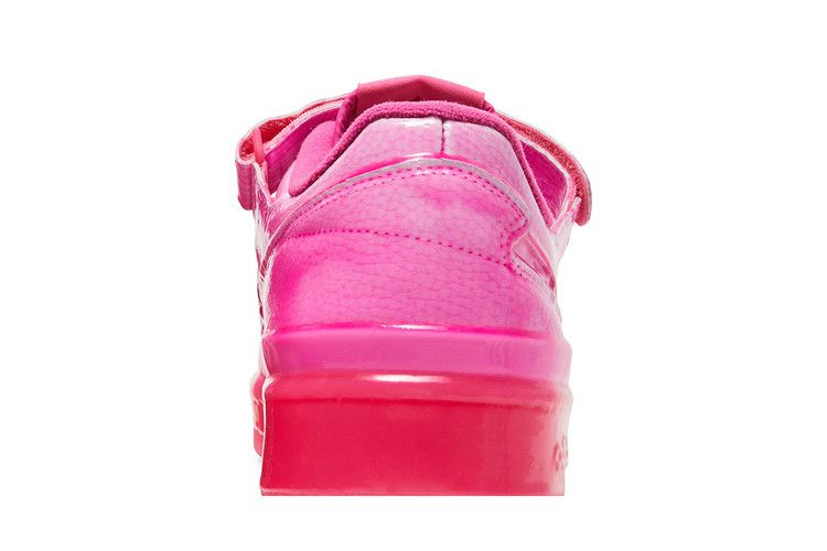 Модель Jeremy Scott x adidas Forum Dipped Low "Solar Pink" - это вдохновленный американским дизайнером DIY вариант ретро-обуви. Верх из глянцевой кожи с монохромной горячей розовой отделкой, которая распространяется на язычок и внутреннюю часть с текстильной подкладкой. Низкий верх застегивается на стандартную шнуровку и регулируемый ремешок с крючками и петлями. Легкая амортизация обеспечивается танкеткой из EVA, расположенной в полупрозрачной резиновой подошве цвета фуксии.