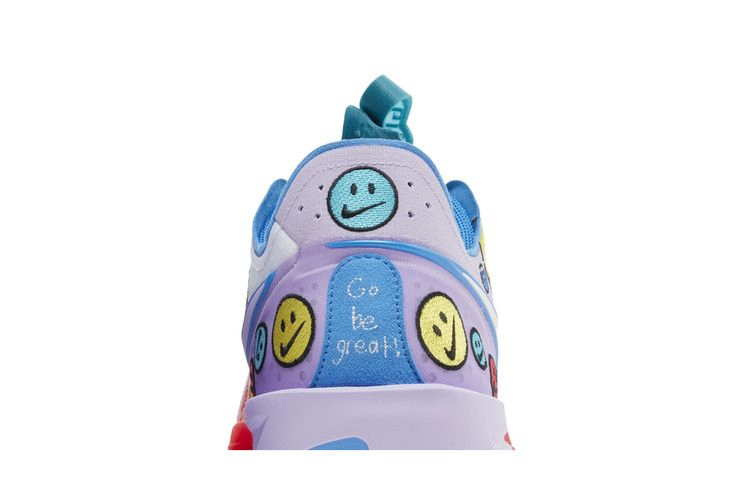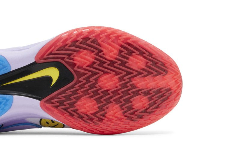 Модель Jewell Loyd x Nike Air Zoom GT Cut 3 вдохновлена Джастисом, сыном лучшего друга звезды WNBA. Верхняя часть кроссовок выполнена из замши тилового цвета с текстильными накладками лавандового оттенка, украшенными разноцветной графикой в виде смайликов. В шнурки встроены тросики Flywire, обеспечивающие надежную фиксацию, а мягкий воротник в области ахилла обеспечивает комфортную посадку. Промежуточная подошва ZoomX из вспененного материала по всей длине обеспечивает чуткую амортизацию при каждом шаге.