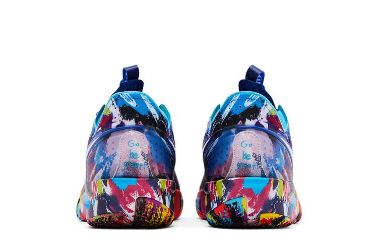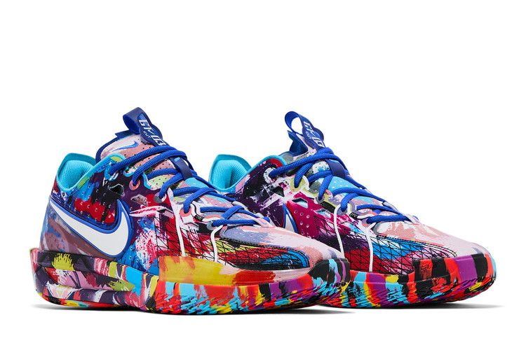 Jewell Loyd x Nike GT Cut 3 "Paint" - это вторая расцветка для звезды WNBA, которая отличается яркими, бессистемными брызгами цвета на внешней стороне кроссовок. Белая фирменная надпись Swoosh украшает текстильный верх, а в шнурки встроены тросики Flywire, обеспечивающие надежную фиксацию. Графика "1 из 1" на носочной части дополнена предупреждением "Не для перепродажи", а мотивационная надпись на задней части пятки гласит "Go be great!".