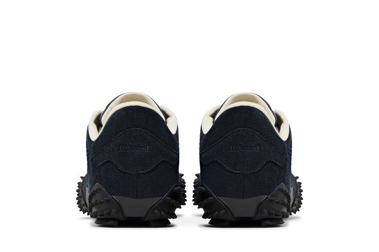 JJJJound x PUMA Mostro 'Deep Navy' обновляет ретро-силуэт, создавая минималистичный дизайн в соответствии с фирменной эстетикой монреальского бренда. Верх из замши темно-синего цвета с подкладкой из белой кожи и асимметричной шнуровкой украшен тональной строчкой, которая придает форму полоске Formstrip. Брендинг JJJJound украшает пяточную часть и носок. Подошва из черной резины с шипами огибает носок и пятку.