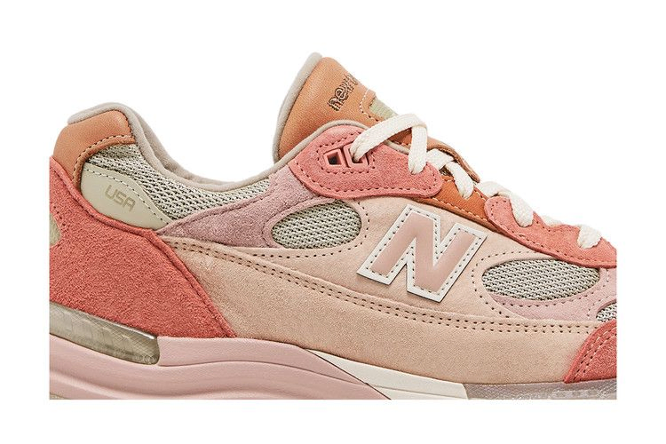 Модель Joe Freshgoods x New Balance 992 Made in USA 'Aged Well' празднует пятилетие совместной работы творческих партнеров. Модель имеет сетчатую основу цвета таупа с накладками из замши свиной кожи пыльно-розового и кораллового оттенков. На заднем язычке и язычке из кожи коричневого цвета вышиты логотипы New Balance и JFG. Промежуточная подошва ABZORB с амортизацией ABZORB SBS в носочной и пяточной частях обеспечивает комфорт при ходьбе.
