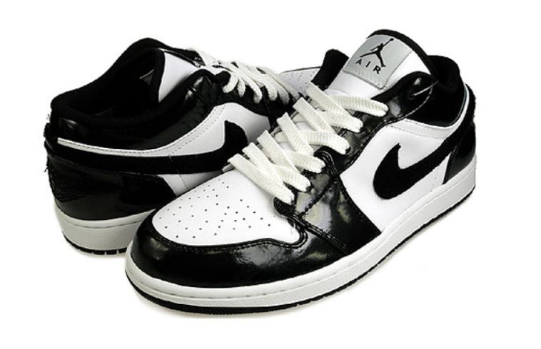 Низкая модель легендарных кроссовок Air Jordan 1, выполненная в черно-белом цвете с лакированными вставками и черным Swoosh на боковой части кроссовка.- Цвета: white/black