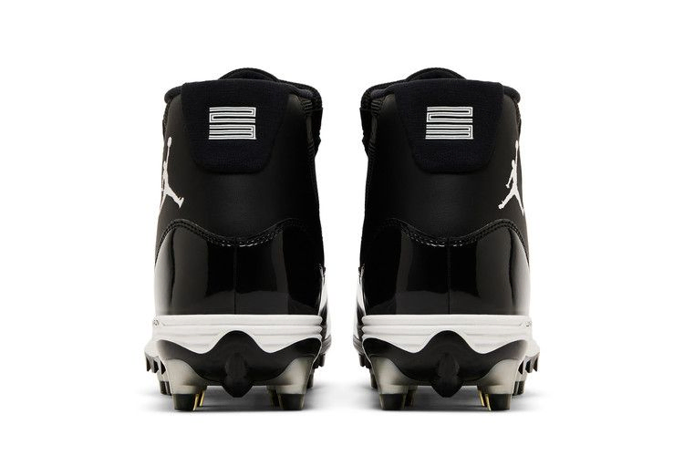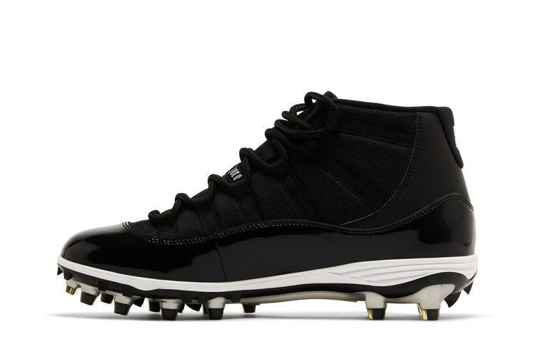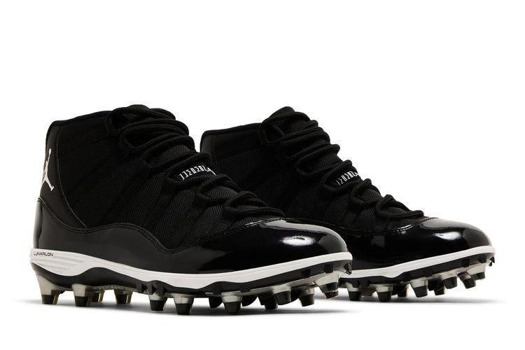 Jordan Brand выходит на футбольное поле с моделью Air Jordan 11 Retro TD Cleat. Верхняя часть из черной лакированной кожи и сетки с вышитым логотипом Jumpman на пятке. Белая подошва из пеноматериала Lunarlon и конфигурация из 12 колец обеспечивают комфорт и сцепление во время игры.