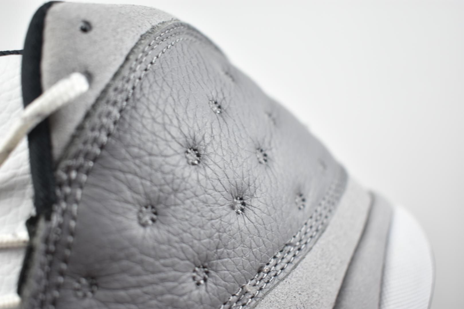 Atmosphere Grey - сочетание цветов исключительно в нейтральных оттенках. Белая кожаная основа покрыта серыми кожаными оверлейными вставками, дополненными легким оттенком серого на замше. Эта пара Jordan 13 дропнута в марте 2019 года и доступна для заказа по цене от 190$.- Цвета: Atmosphere Grey/White-University Red-Black