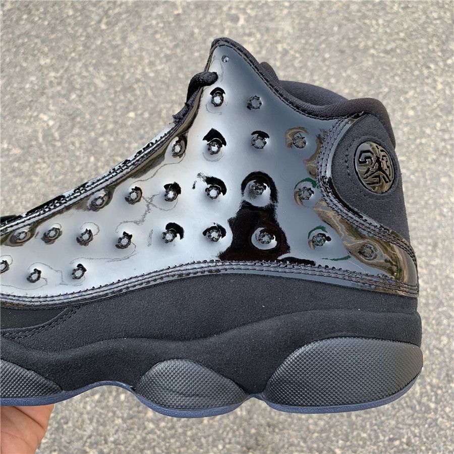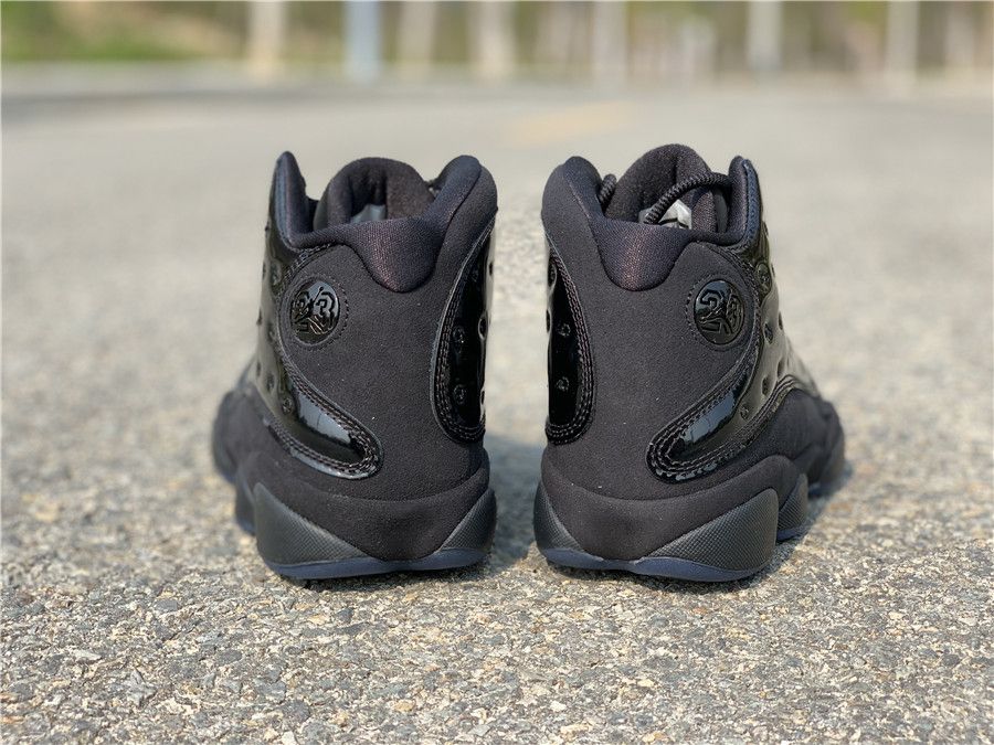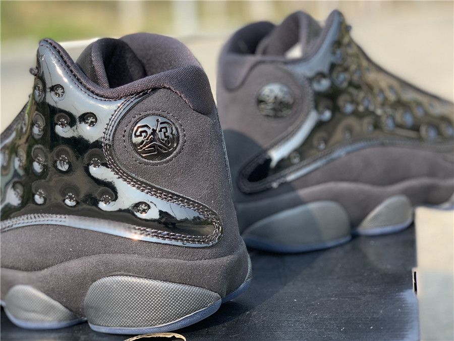 Расцветка AJ 13 Retro Cap and Gown вышла с черным верхом из замши и лакированной кожи, черной мидсолью и черной подошвой. Дропнули в апреле 2019 и теперь в розницу найти их можно от 200$.- Цвета: Black/Black