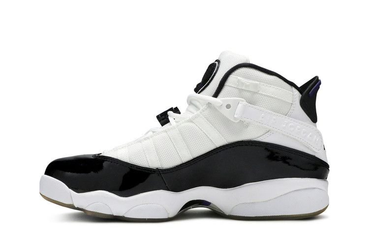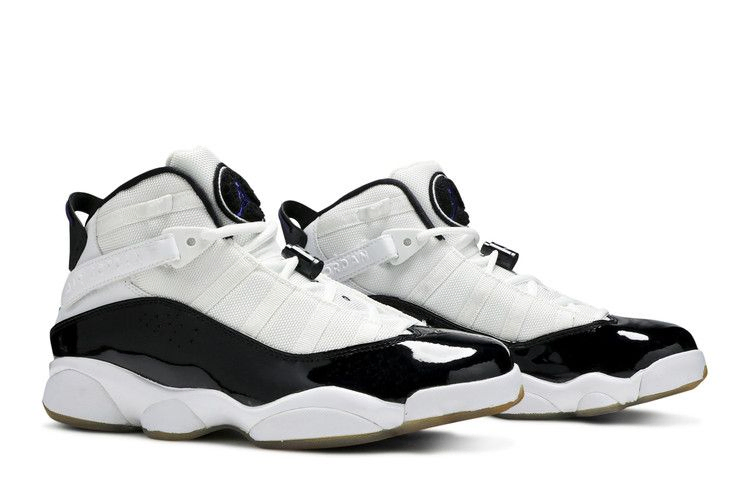 Поляризационные Jordan 6-Rings могут быть гибридом семи культовых кроссовок Air Jordan, объединенных в одну, но расцветка Concord напрямую вдохновлена классической палитрой AJ 11, на которую она похожа. В результате ретро-эстетика включает в себя преимущественно белый верх с черной лакированной кожей, акценты Dark Concord и прозрачную подошву.