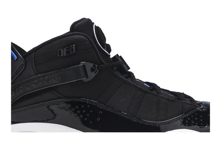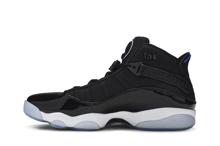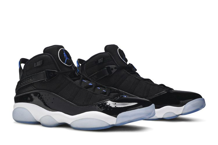 В честь шести чемпионских титулов Майкла Джордана в НБА в кроссовках Air Jordan 6 Rings собраны лучшие элементы дизайна каждой из моделей Air Jordan, в которых MJ завоевывал свои титулы. В классической расцветке "Space Jam", выпущенной в январе 2018 года, верх кроссовок выполнен из сетки и усилен лакированным брызговиком, который обхватывает стопу. Ремешки на липучках и система застежек обеспечивают индивидуальную поддержку. Под ногами полноразмерная амортизация Phylon с блоками Zoom Air, усиленная ледяной подошвой.