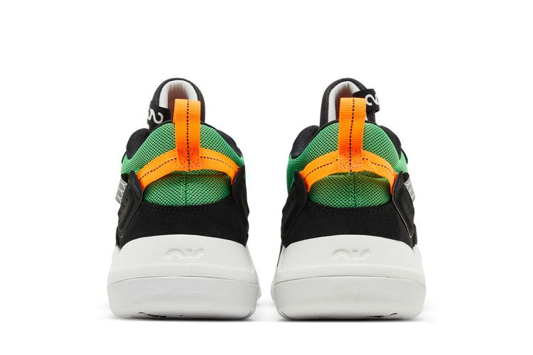 Модель Jordan Air NFH 'Multi' представляет собой силуэт в стиле колор-блок, пронизанный баскетбольным духом. Контрастные синие и зеленые сетчатые панели используются в верхней части, а черные накладки из нубука подчеркивают ретро-стиль кроссовок. Оранжевая тесьма на пятке придает неожиданный оттенок. Разноцветный ансамбль в верхней части компенсируется белой подошвой из скульптурной пены, оснащенной видимым блоком Air-sole в пятке. Резиновая подошва с модифицированным рисунком сцепления "елочка" обеспечивает превосходное сцепление.