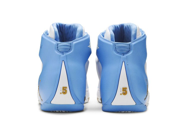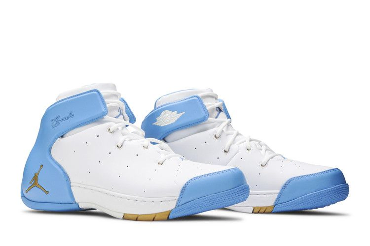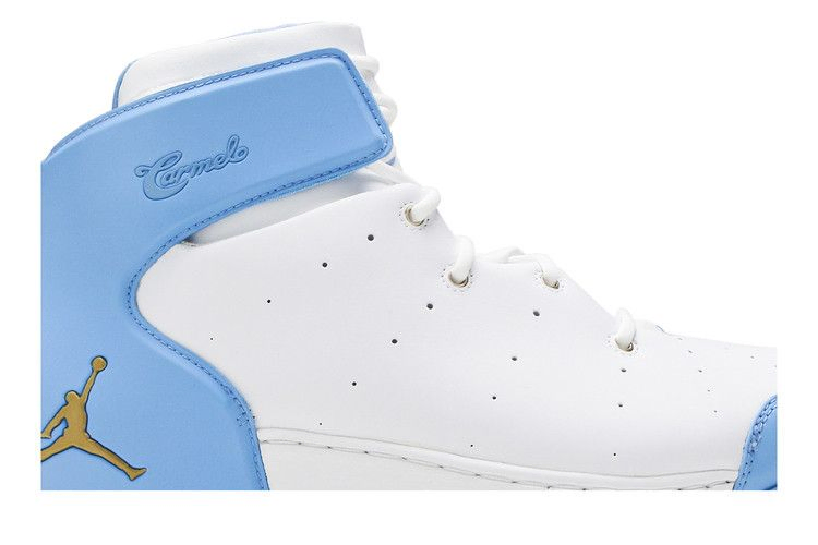 Jordan Carmelo 1.5, первые фирменные кроссовки Кармело Энтони, были впервые выпущены в 2004 году. После того как в 2003 году он привел команду "Сиракьюз" к национальному первенству в качестве первокурсника, Энтони был выбран "Денвер Наггетс" третьим номером драфта НБА. Мело играл в "Денвере" с 2003 по 11 год, и эта модель выполнена в цветах "Наггетс" - белом, золотом металлик и синем университетском. На подошве красуется знаменитый логотип Jumpman, а также брендинг Кармело, включая дату его рождения - "5.29.84".